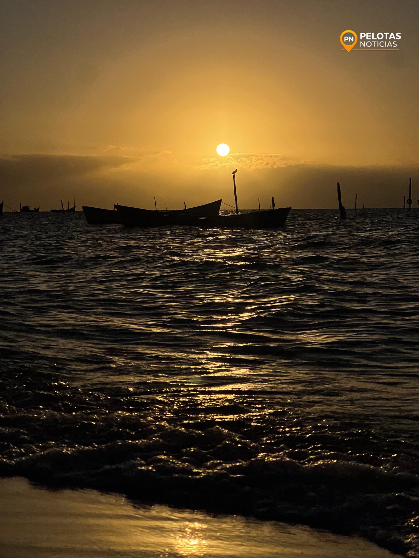 As imagens mostram a força da natureza em um dos cartões-postais mais emblemáticos da cidade, onde o movimento suave das ondas, as embarcações e as estruturas da pesca artesanal compõem um quadro típico da identidade pelotense. O contraste entre o céu alaranjado e o tom escuro da lagoa transforma o início do dia em um convite à pausa e à apreciação do momento.