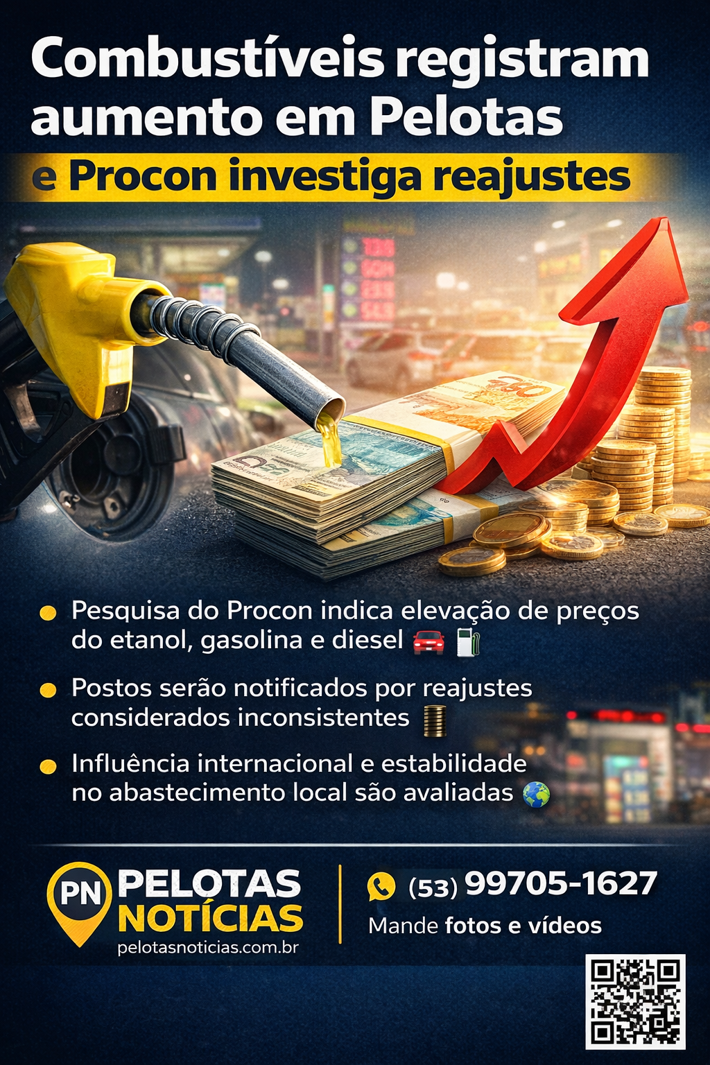 Os preços dos combustíveis apresentaram elevação no mês de março em Pelotas, conforme levantamento realizado pelo Procon municipal em postos da cidade.