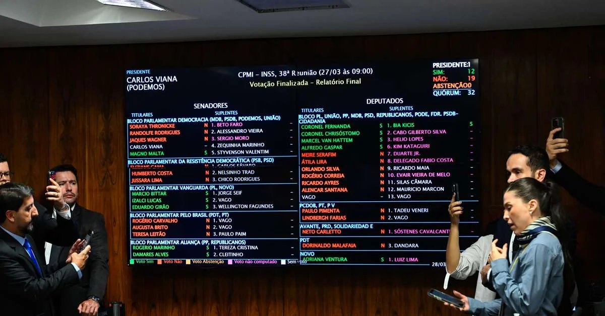 Por 19 votos a 12, a CPMI do INSS rejeitou o relatório do deputado Alfredo Gaspar (União-AL). A votação só foi concluída na madrugada de sábado, no último dia de funcionamento da comissão. O presidente da CPMI, senador Carlos Viana (Podemos-MG), decidiu então encerrar os trabalhos sem apreciação do relatório paralelo apresentado pelos governistas. A comissão funcionou por sete meses.